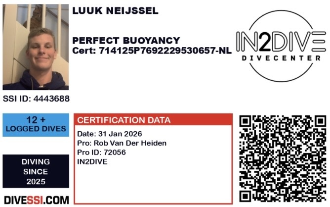 Mijn Open Water brevet vandaag gehaald bij Rob. Deep Dive ook al ingepland. Bedankt voor de goede ervaring!